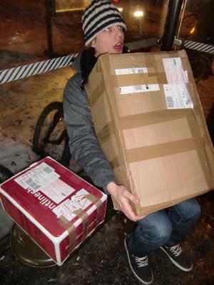 Hi, ich bin der Hannes aus Deutschland!Warum musste ich nur diese verdammt schweren Pakete hier hochschicken???Die Bushalte ist doch viel zu weit weg vom Paketshop!!!Zum Glück halten wir Deutschen zusammen und packen an. Außerdem sieht dank diesem Zeug mein Zimmer nun endlich mal etwas gemütlich und bewohnt aus. Langsam wird's!Am meisten habe ich mich heut aber über mein neues Efterklang Poster gefreut :)